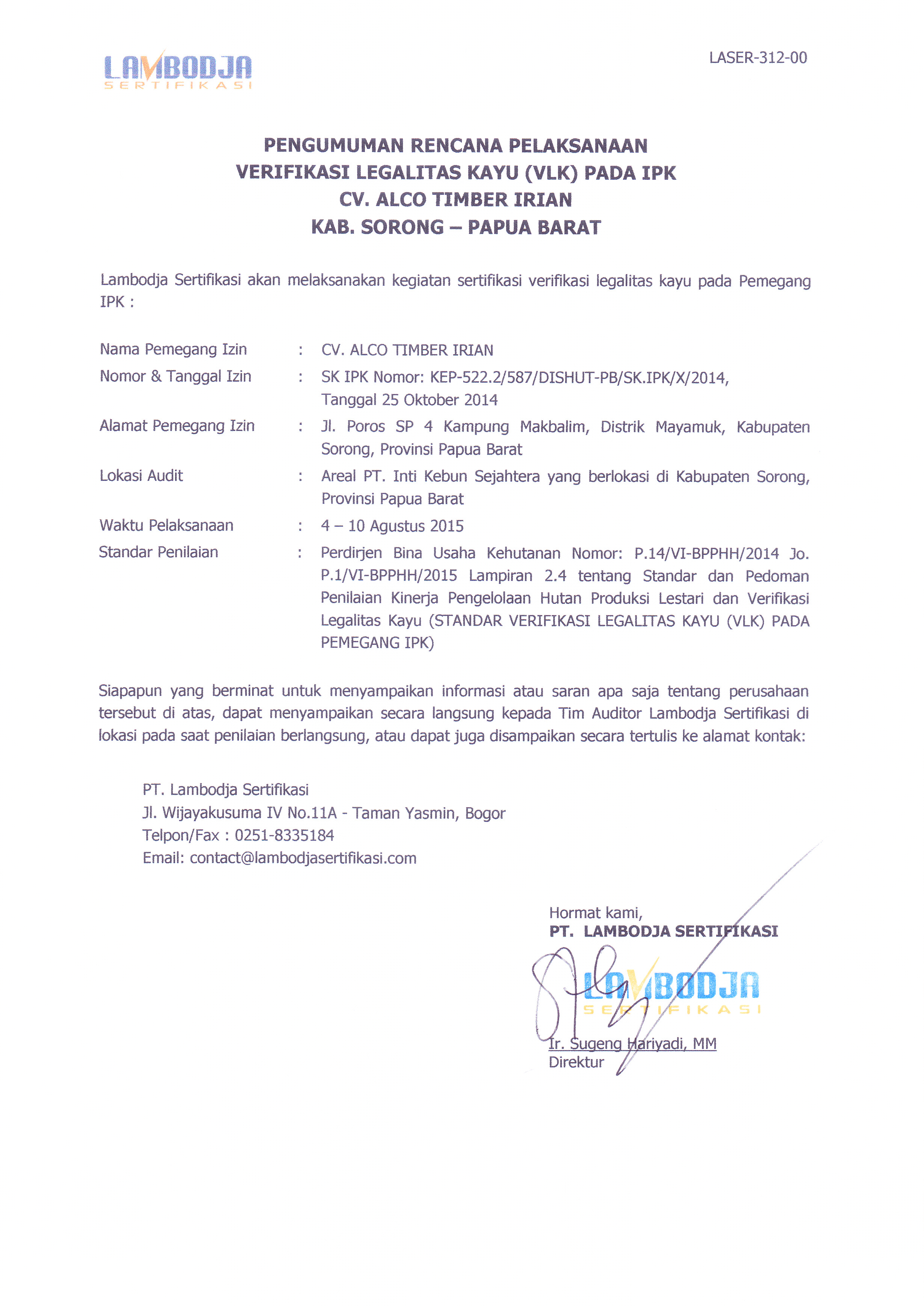 Pengumuman Rencana VLK IPK CV. Alco Timber Irian (1)