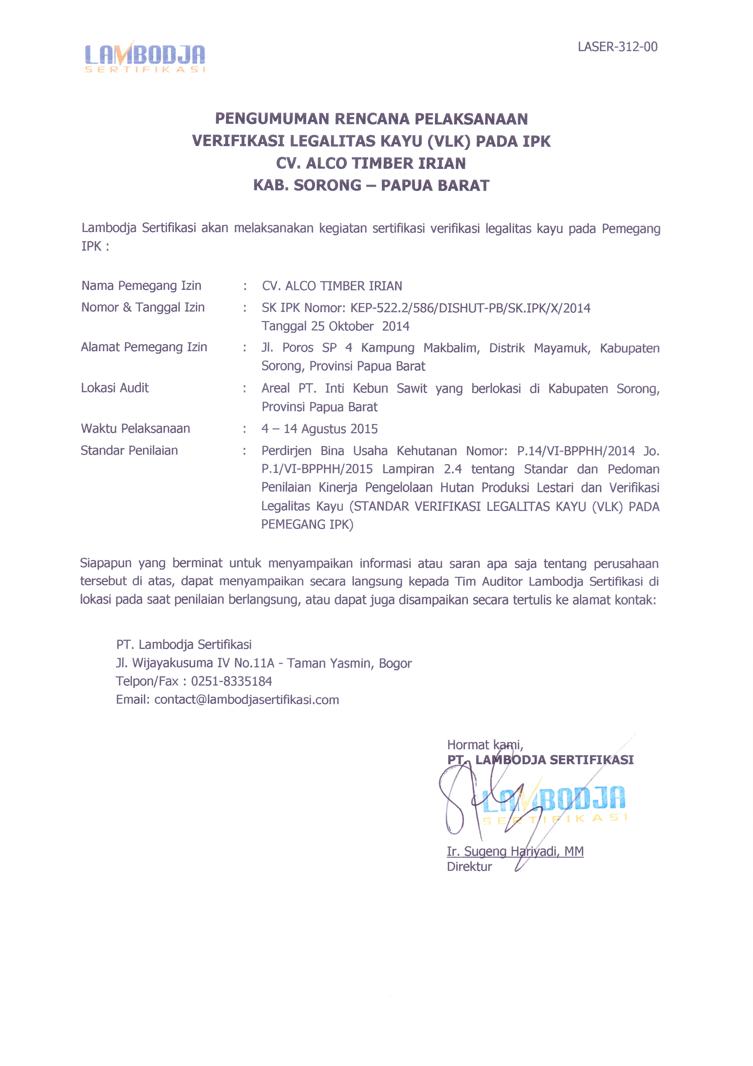 ← Pengumuman Rencana VLK IPK CV. Alco Timber Irian (1)